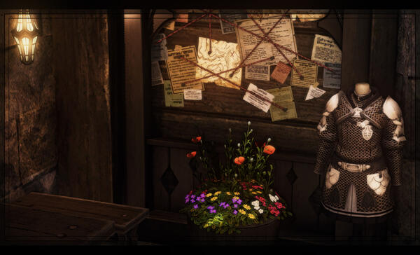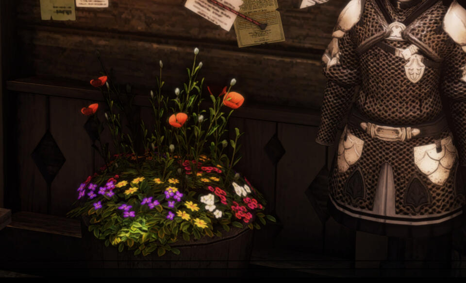 | Flowers, beautiful details, soft things (speaking & items), perfect craftsmanship of any type, hunting and fishing, magitek, metal of different types, fine ale, the quiet, the moon, nature and its wonders, protecting those he cares for, detailed weapons and armor, meat(?) of sorts. |